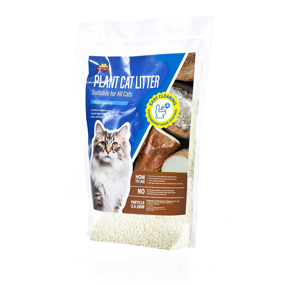кошачий наполнитель из маниоки изготовлен из натурального крахмала маниоки, который является биоразлагаемым и экологически чистым. После использования его можно безопасно компостировать, что снижает нагрузку на окружающую среду.