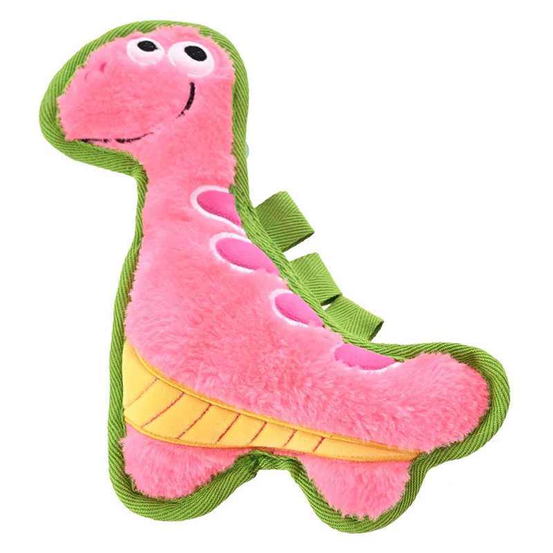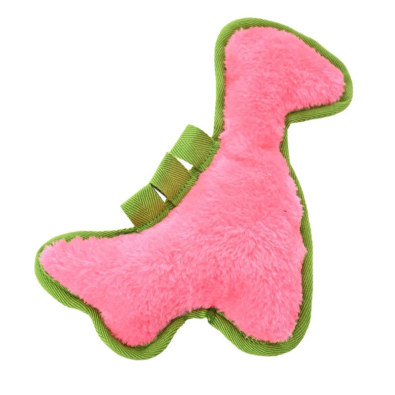 Яркая розовая форма динозавра добавляет веселья и визуальной привлекательности, становясь любимой игрушкой для домашних животных.