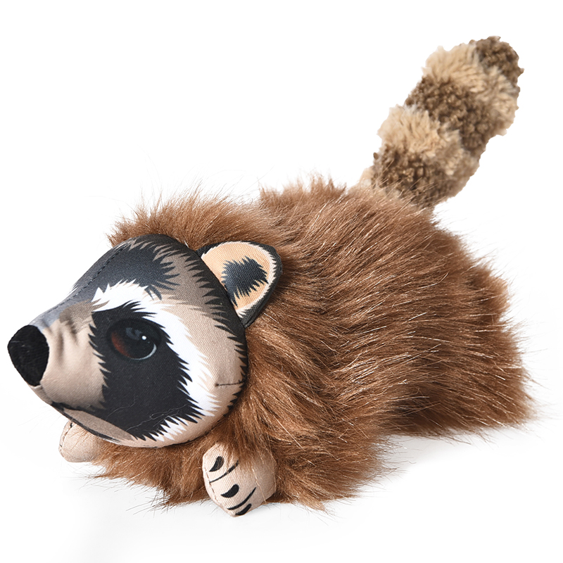 Игрушка изготовлена из комбинации окрашенного аэрозольной краской полотна и реалистичного длинного меха, а также наполнителя из полипропиленового волокна, обеспечивающего мягкость и прочность.