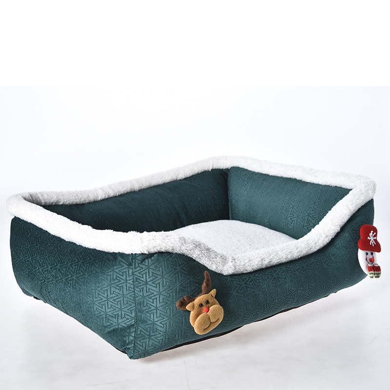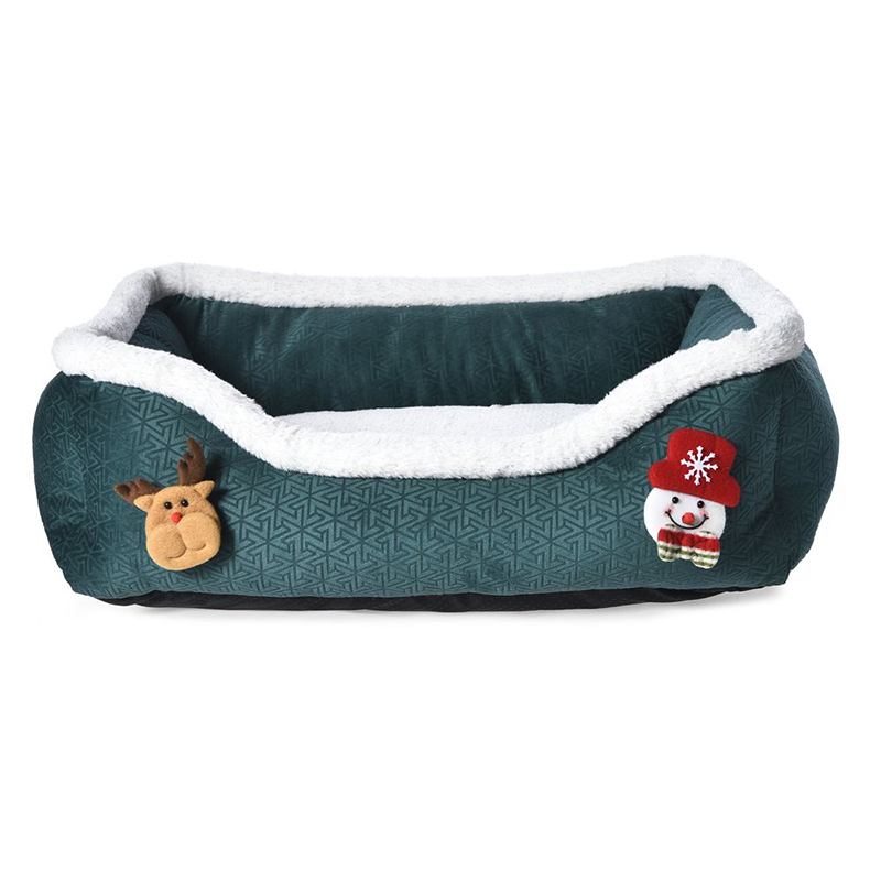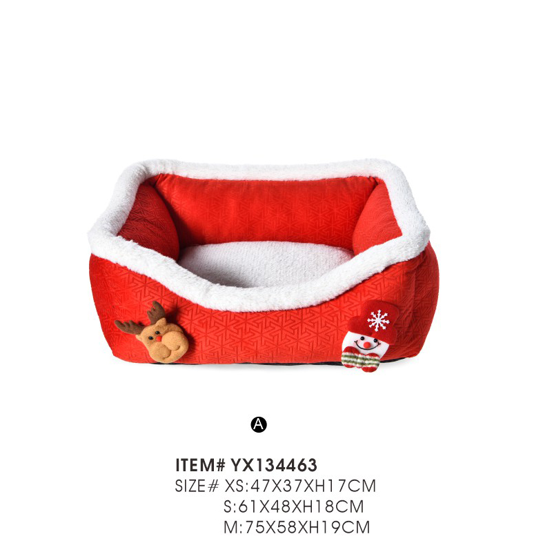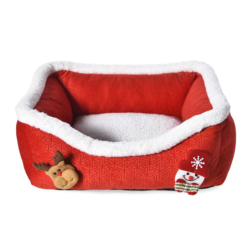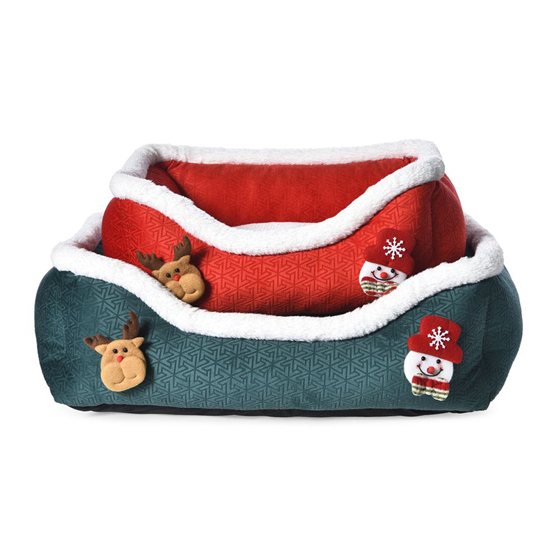 Изготовлено в традиционных рождественских цветах — красном и зеленом — с милыми игрушечными украшениями; служит как уютной лежанкой для питомца, так и праздничным украшением дома.