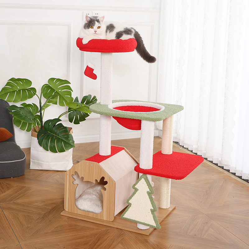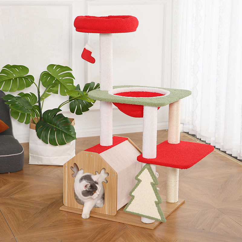 Благодаря компактной высоте 110 см конструкция идеально вписывается в небольшие помещения, предлагая при этом богатые возможности для вертикальной активности. Рождественский дизайн ограниченной серии делает ее идеальным подарком для любителей кошек и отличным сезонным товаром для витрин или рекламных акций.