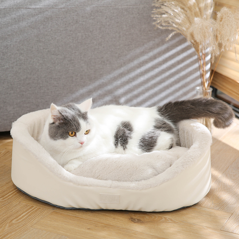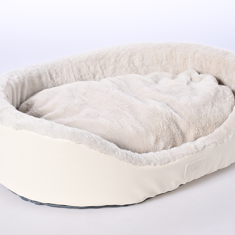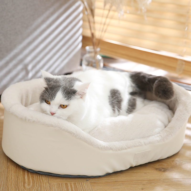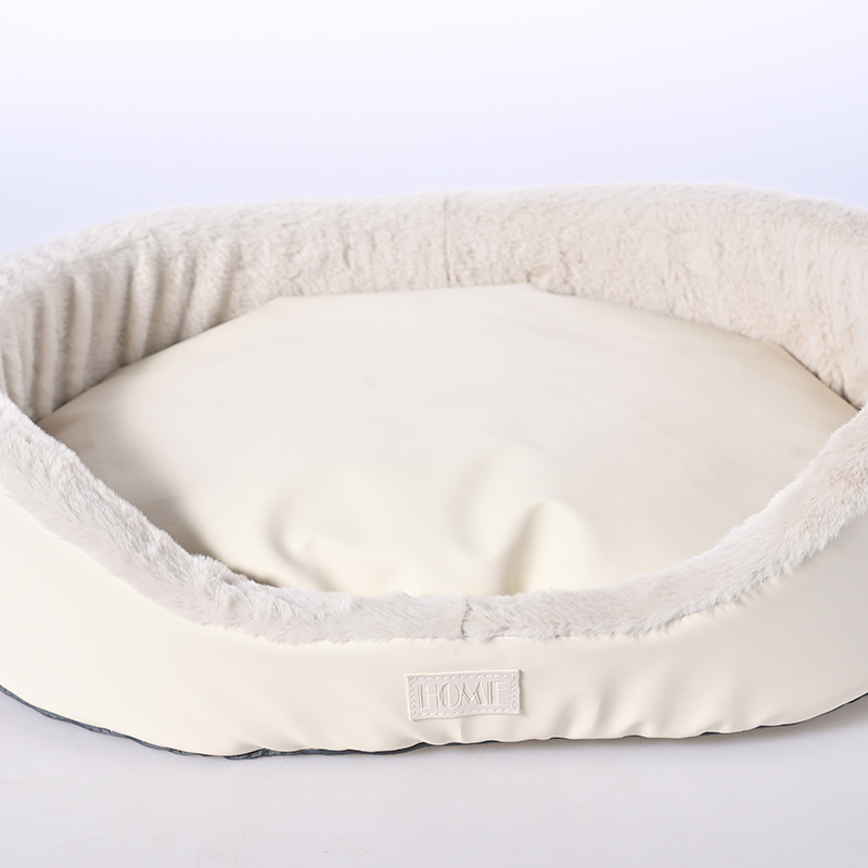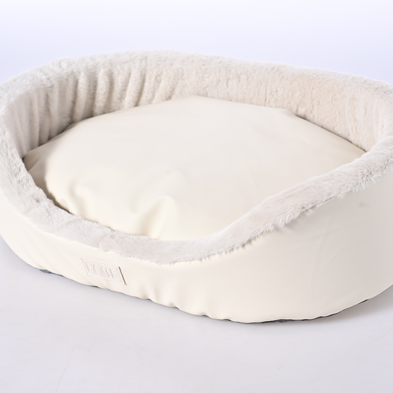 Роскошный лежак для кошек изготовлен из мягкой искусственной кожи и имеет мягкую подкладку из кроличьего меха, обеспечивая комфорт и приятные ощущения для вашей питомца.