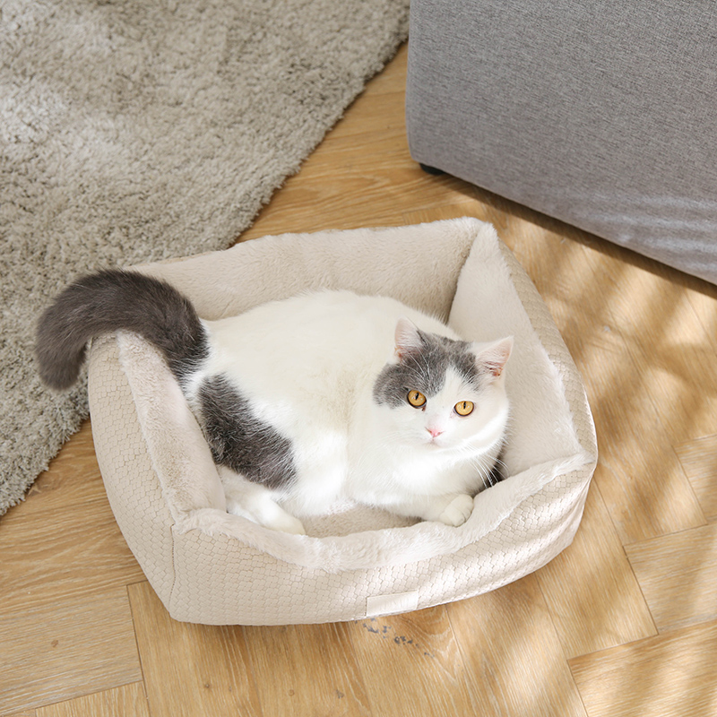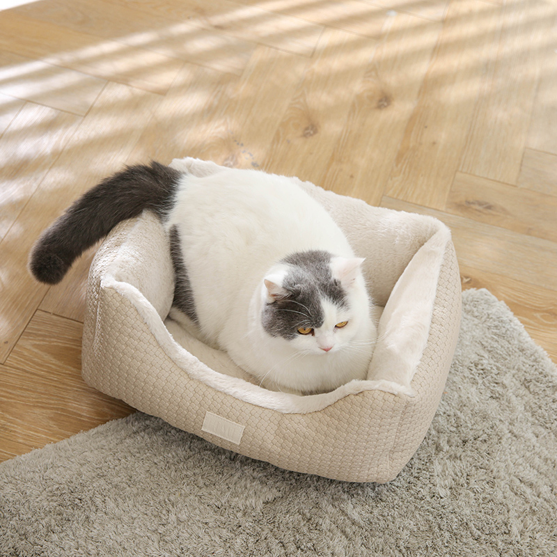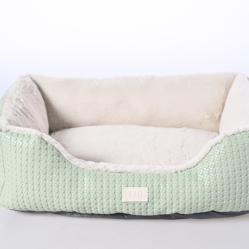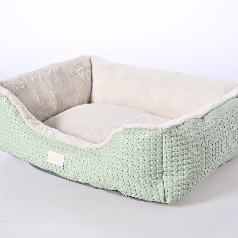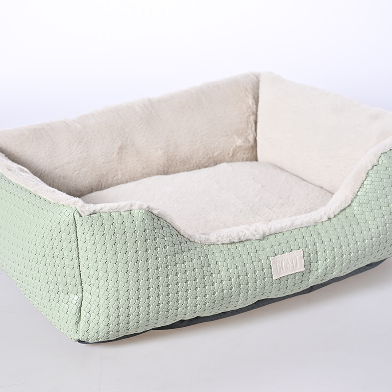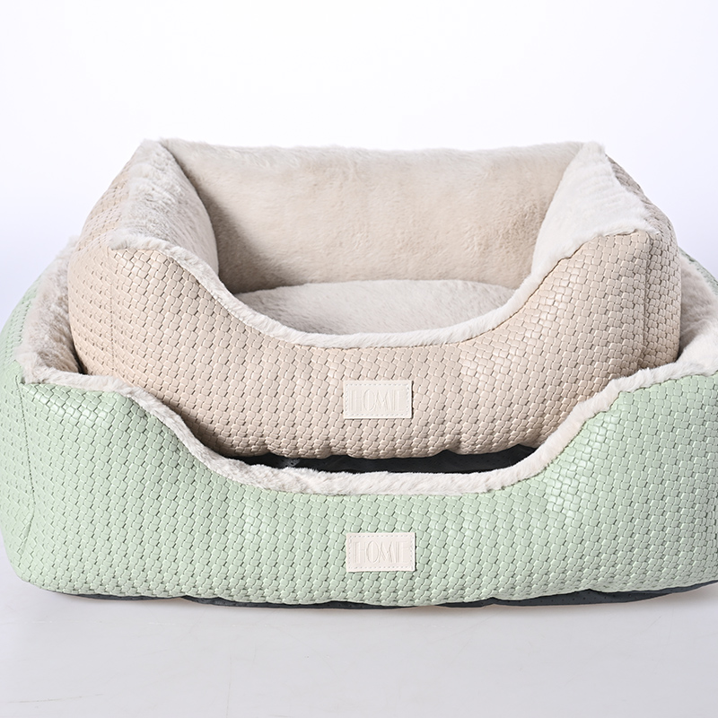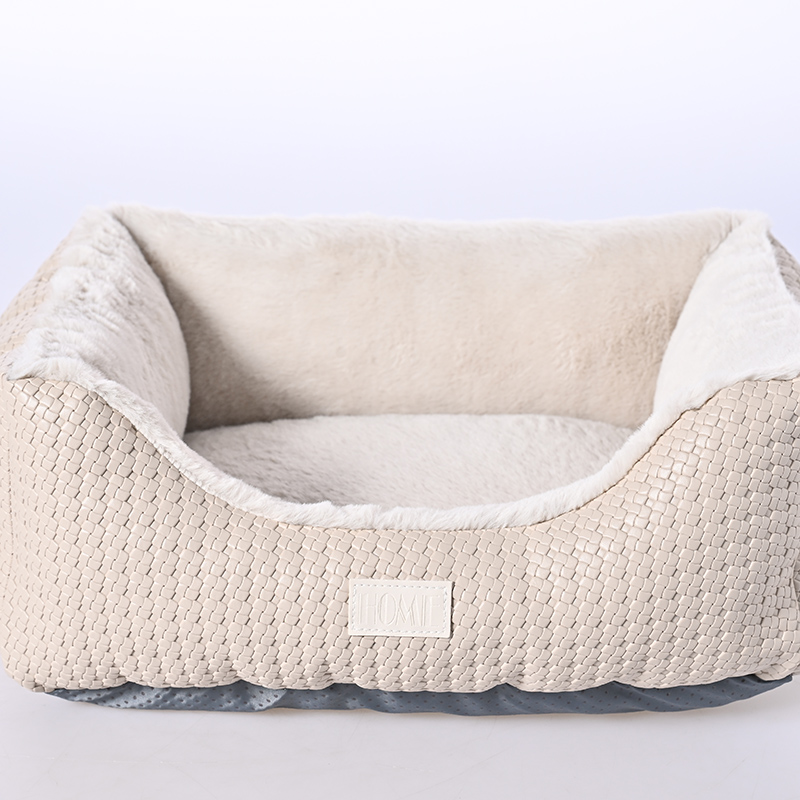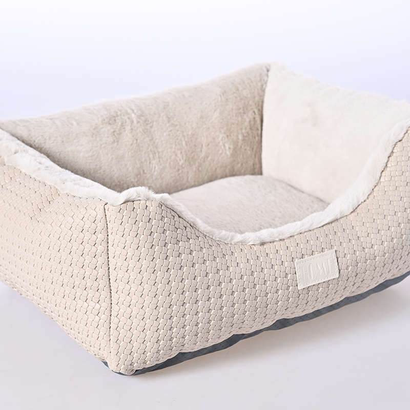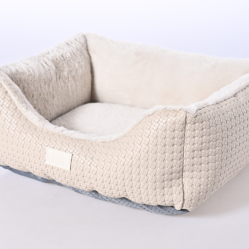 Лежанка изготовлена из материала с новой плетёной текстурой с тиснением снаружи и имеет мягкую подкладку из кроличьего меха внутри, обеспечивая комфортное и приятное для кожи место отдыха.