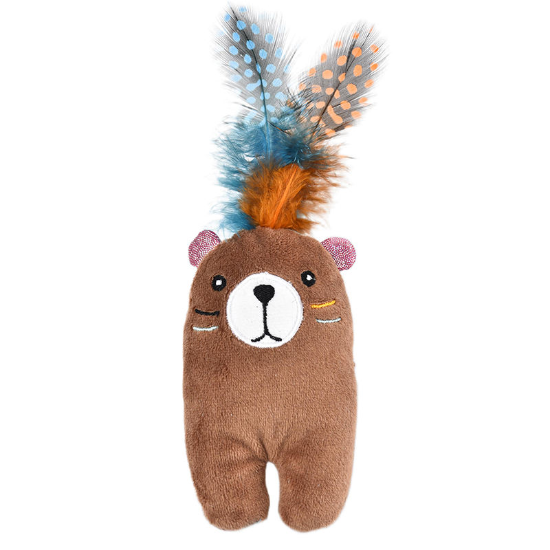 Игрушка изготовлена из кристально мягкой ткани с наполнителем из кошачьей мяты высшего качества и украшена натуральным пером.