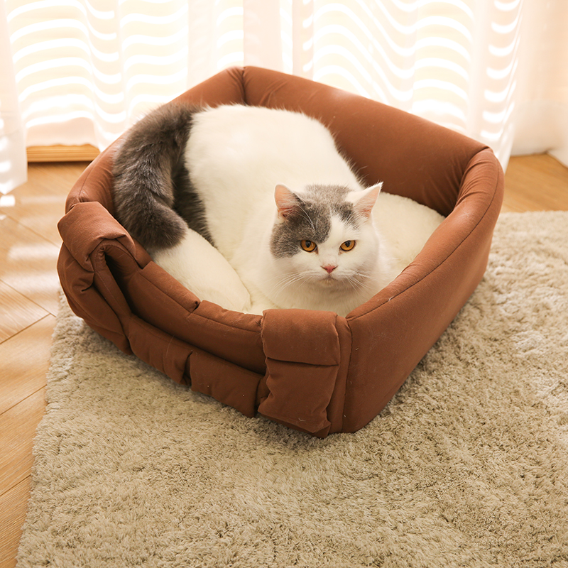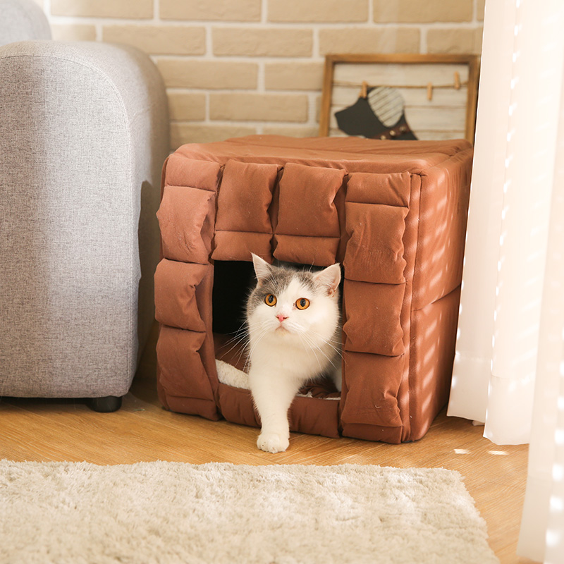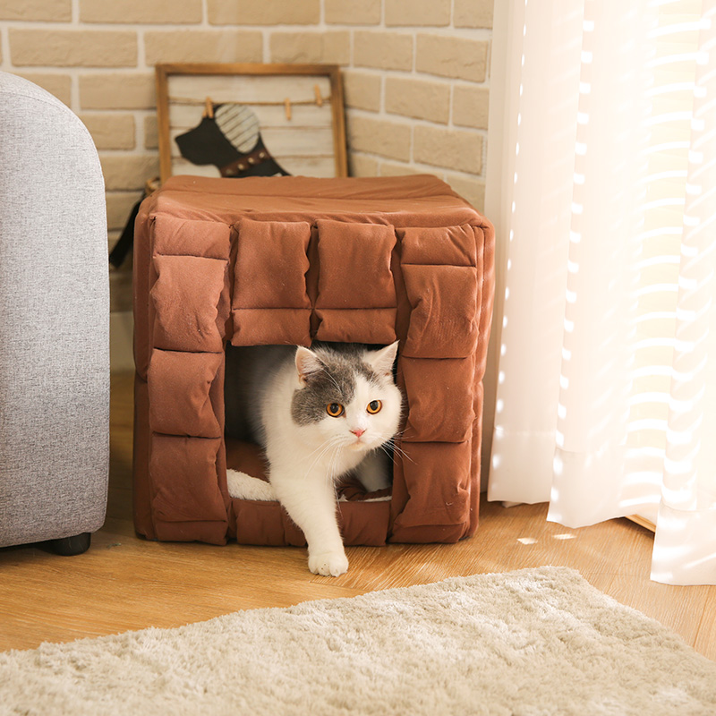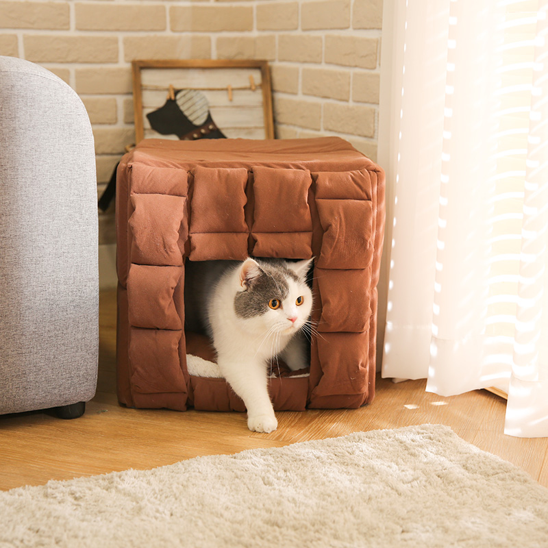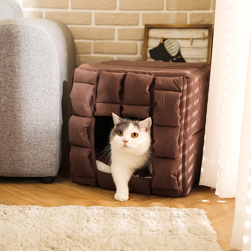 может использоваться как закрытый домик для домашних животных или открытая квадратная кровать в зависимости от настроения вашей кошки.